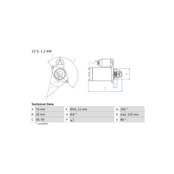 | Part Note | Clockwise rotation, Fitting position: Starter, No of Teeth: 8, 9, Position/Degree: Links, Rated Power: 1.1KW, Starter Type: Self-supporting |